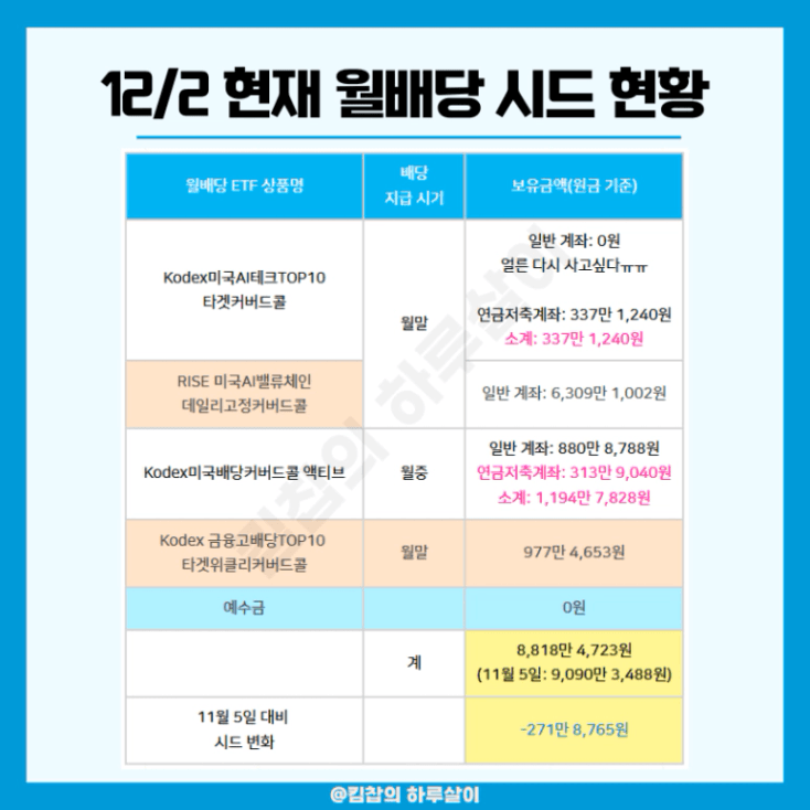 저의 11월 월배당 ETF 배당금 정산이었습니다!!!