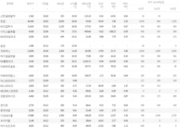 연 배당수익률이 15% 이상인 종목들 보면