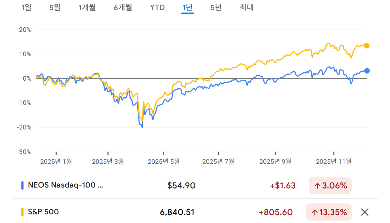 QQQI ETF 주가와 S&P500 1년 주가 비교