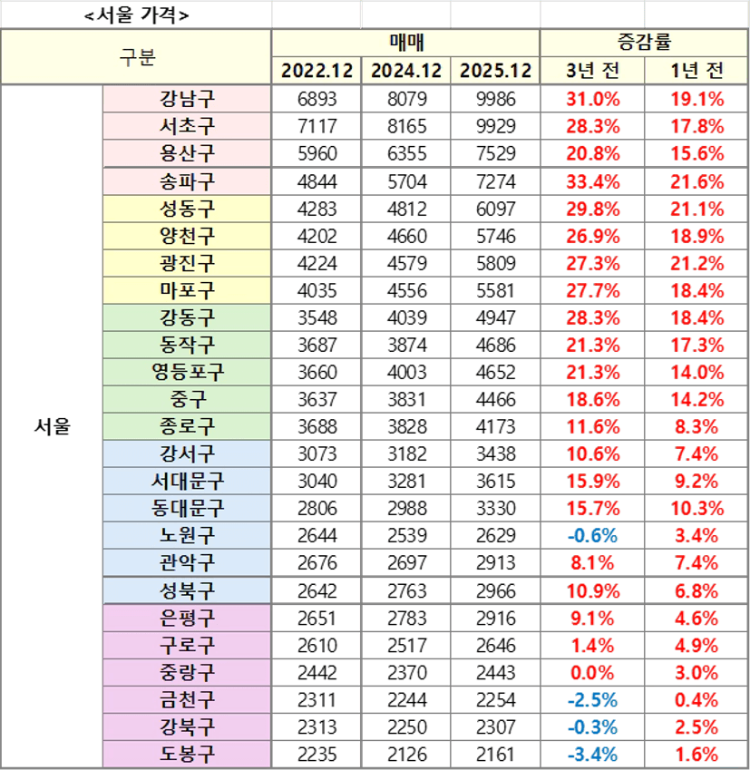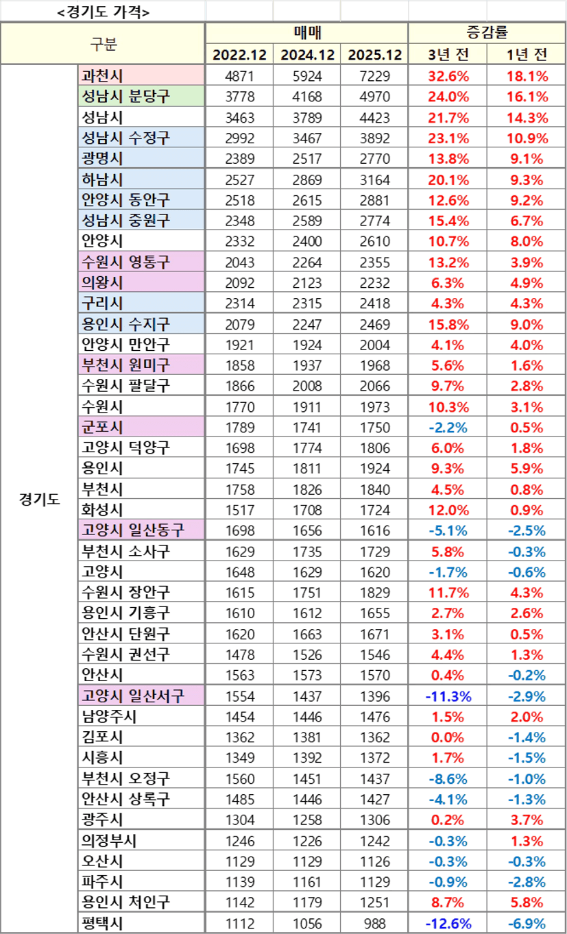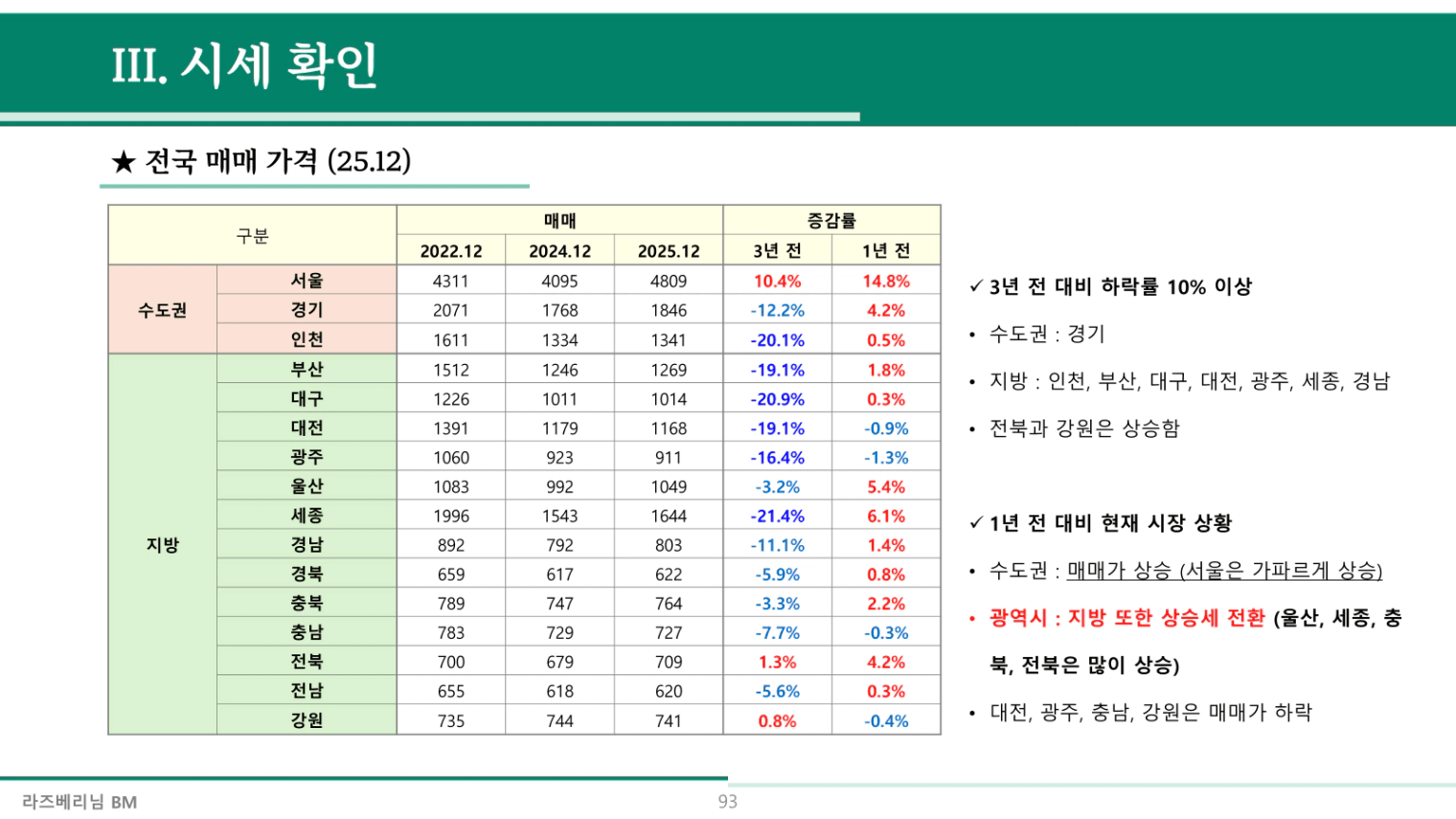 3년 전 / 1년 전 / 현재 매매가 비교를 통해
