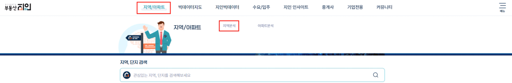 1) 부동산 지인 사이트 → 지역/아파트 → 지역분석