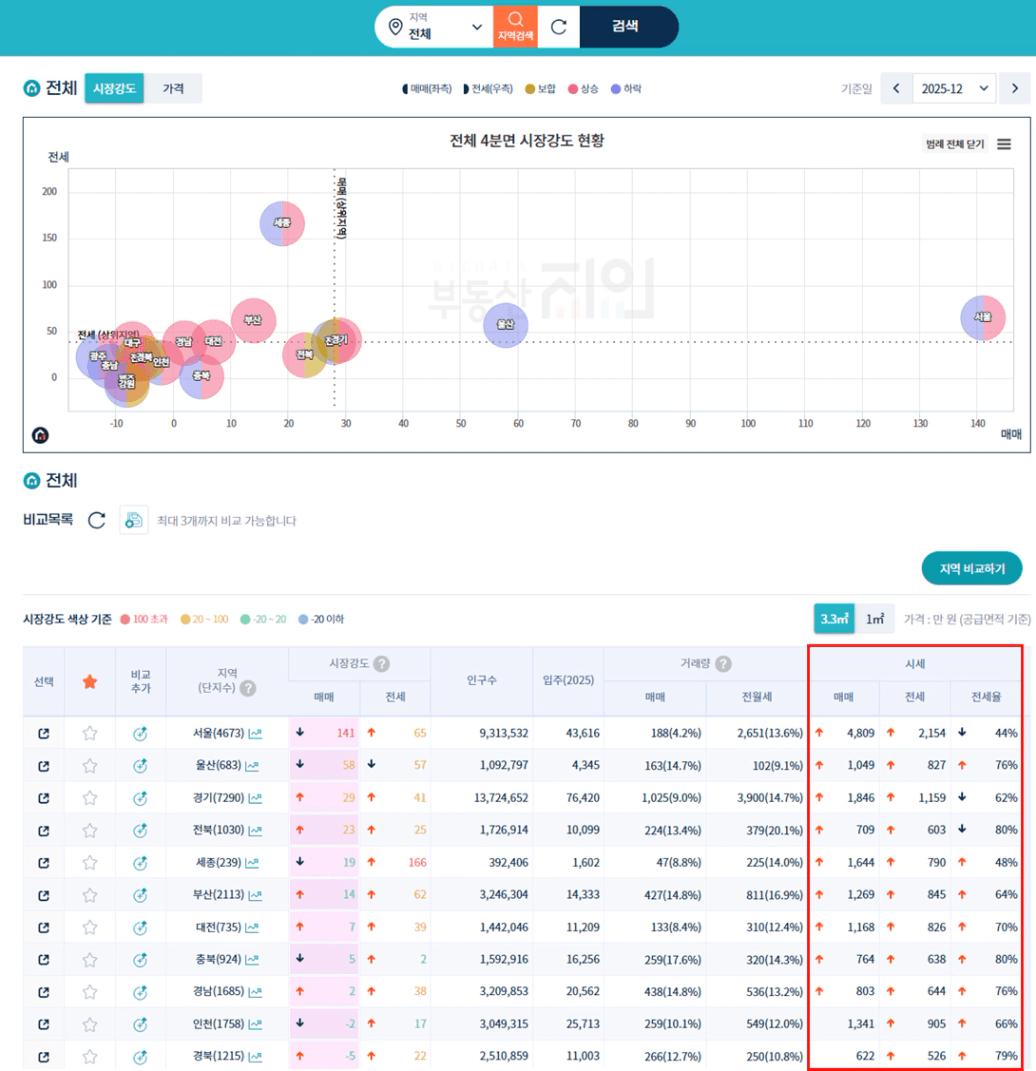 2. 전국 매매가 비교로 시장 흐름 파악하기