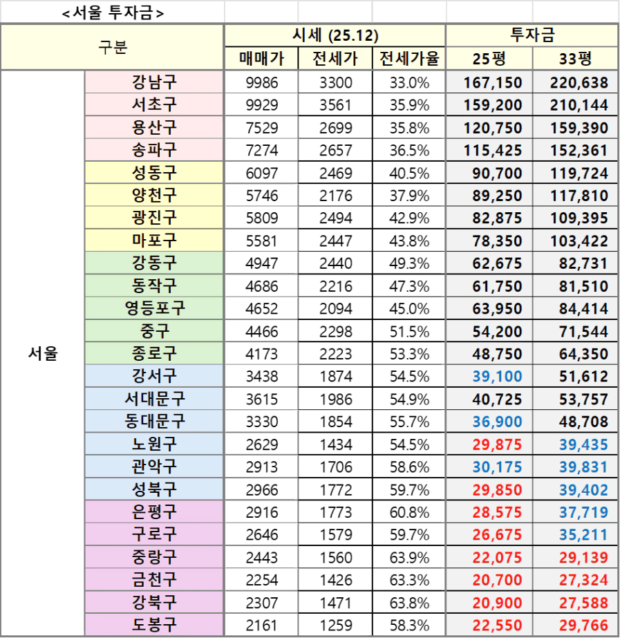 현재 매매가·전세가 기반으로 전세가율과 예상 투자금을 계산해볼 차례입니다.