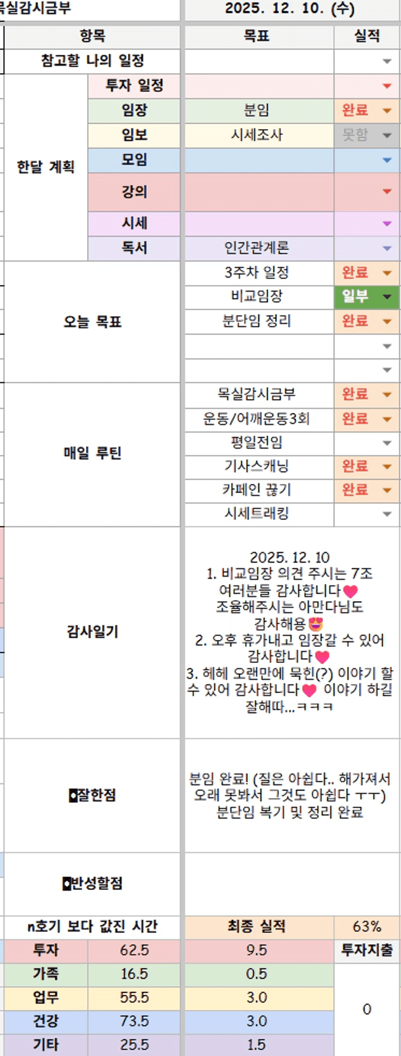2025. 12. 101. 비교임장 의견 주시는 7조 여러분들 감사합니다♥️ 조율해주시는 아만다님도 감사해용😍2. 오후 휴가내고 임장갈 수 있어 감사합니다♥️3. 헤헤 오랜만에 묵힌(?) 이야기 할 수 있어 감사합니다♥️ 이야기 하길 잘해따...ㅋㅋㅋ