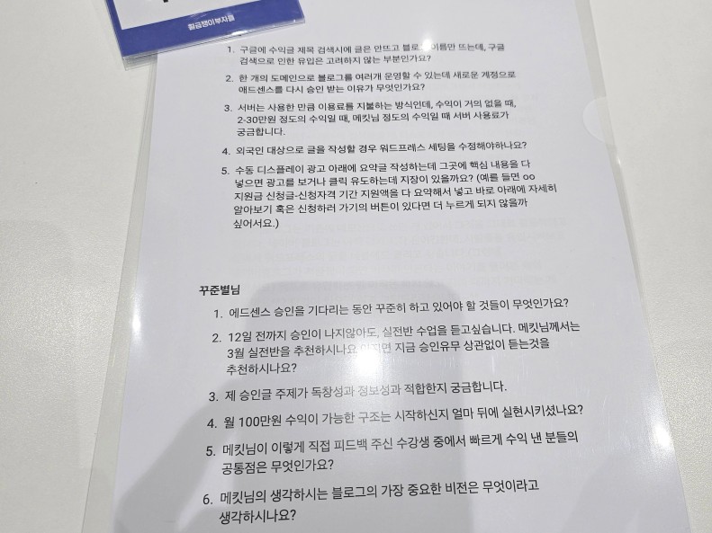 기초반 강의가 끝나기도 전에 애드센스 승인을 받아서 다행히 실전반도 수강신청까지 완료했습니다.
