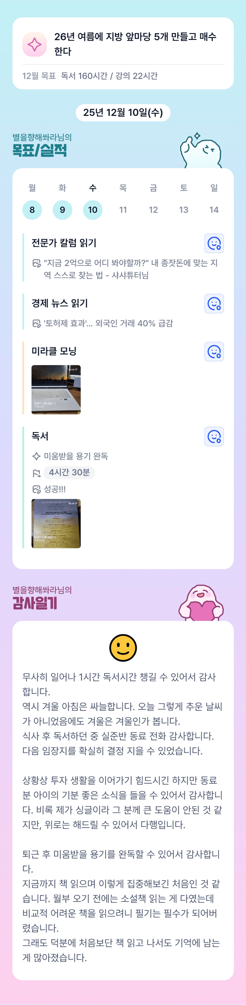 별님 1일 1완독 이십니까?👍👍👍 다독왕 도오전!!🔥🔥 너무 멋지게 하루를 보내신 별님❤️