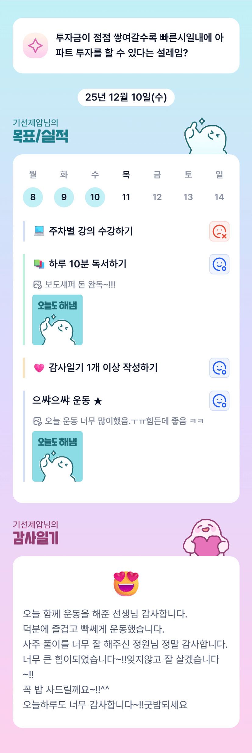 [기선제압]김인턴 튜터님의 재테기 조장 튜터링 정말 사랑과 감사로 이어가는 밤입니다. 감사랑합니다.