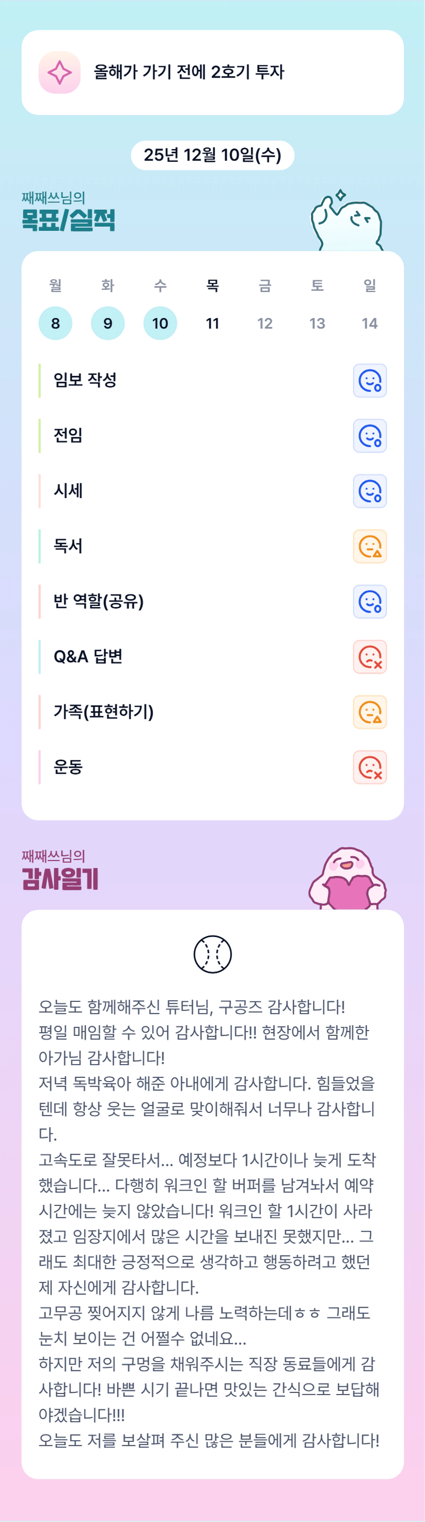 ㅠㅠㅠㅠㅠㅠㅠㅠㅠㅠㅠㅠㅠㅠㅠㅠㅠㅠㅠ 맘고생 많으셨을 것같아요... 게다가 매임 전 길을 잘못 들었다니.... 그럼에도 잘 해낸 째쓰님 고생하셨습니다! 고무공과 유리공에게는 학교끝나고 열심히 챙기기로