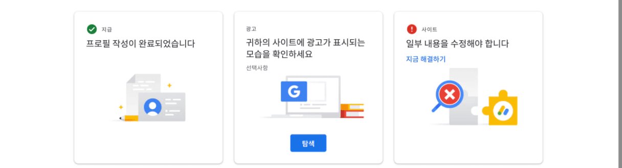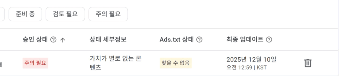 기존 Q&A를 읽어보니 이렇게 메일이 왔더라도 3개 정도 글을 쓴 후에 다시 승인신청을 올려 보라 하는데 그래도 진행하면 될까요? 그리고 애드센스 사이트 화면에 이렇게 떴는데 이것도 주의필요라고 왔기 때문에 이렇게 뜨는건지요 .