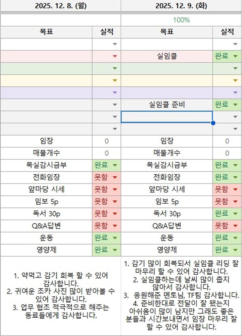 12월 둘째주 중점 추진사항: 실전반 오프모임, 실임클 준비
