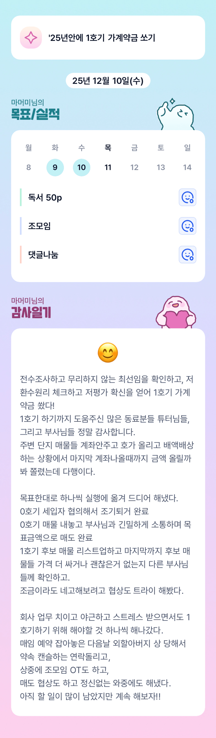 고생하셨습니다. 역시 마머미님 완전짱. 2025년 1호기 확언 성공^^