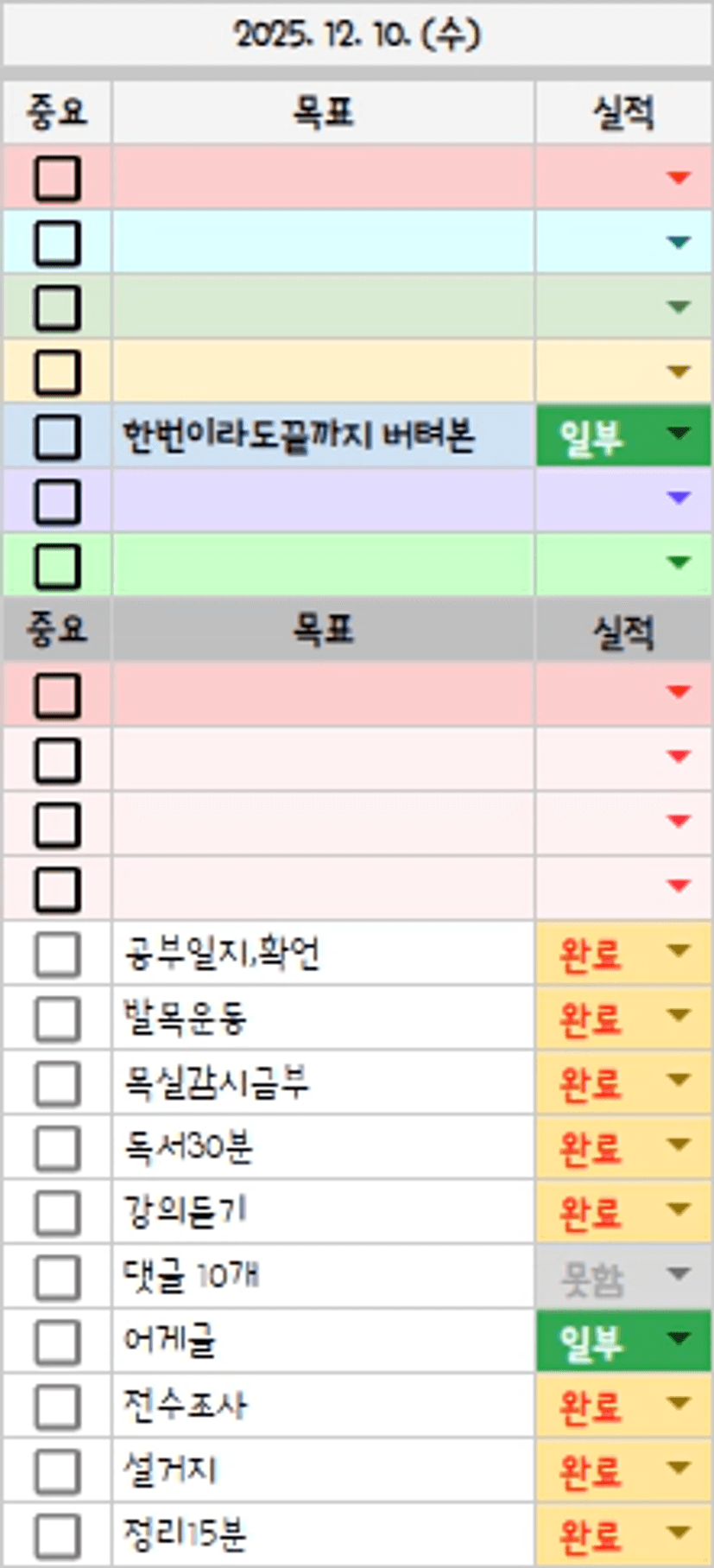 2. 컨디션이 하루하루 달라져서 오늘은 한결 집중 잘하고 진도 나갈수 있어서 감사합니다. 꾸준함이 생명이라 좀더 좋은 컨디션으로 빠르게 올릴수 있는방법 찾기!!!