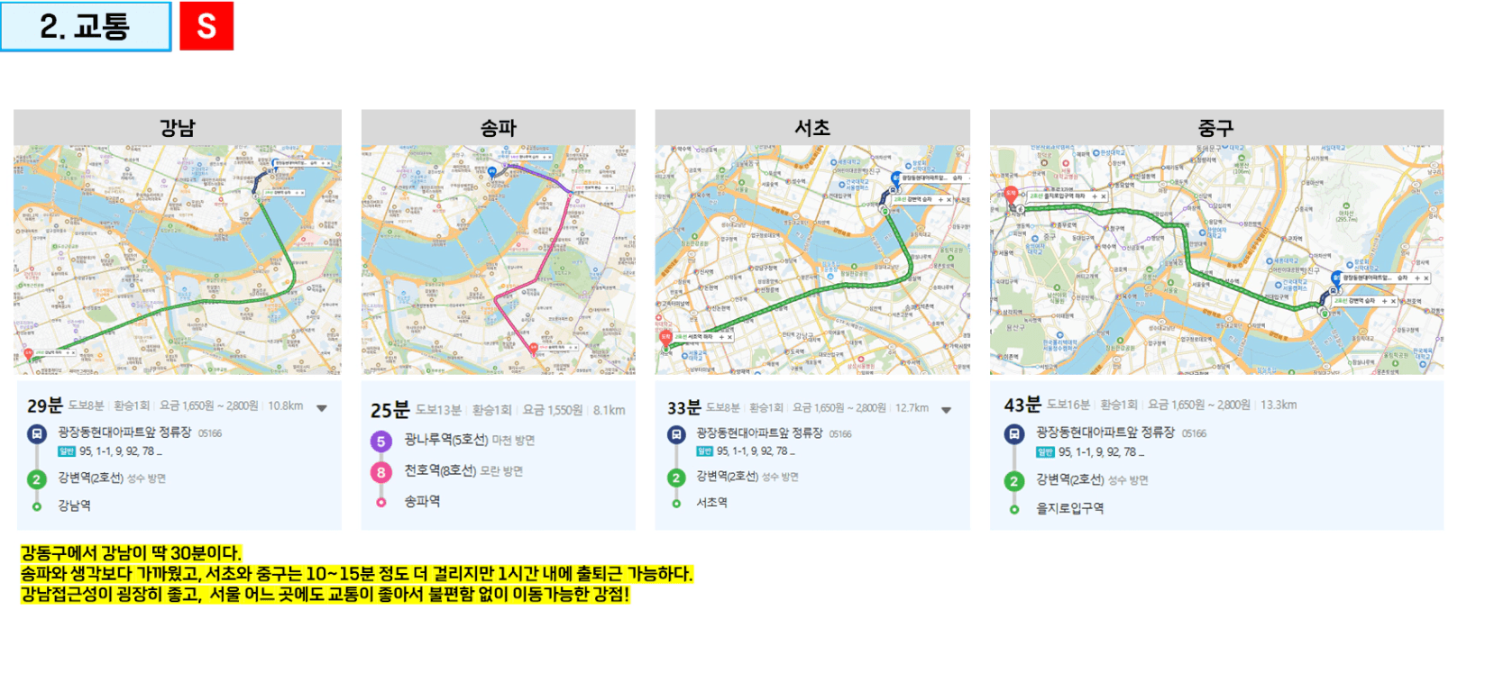 그 지역 사람들은 어디로 출퇴근 할까? 강남까지 가까운가?를 한번 확인해봅니다!