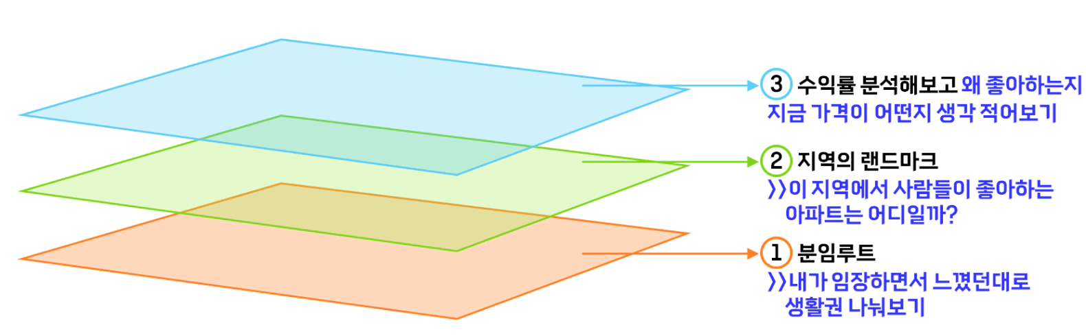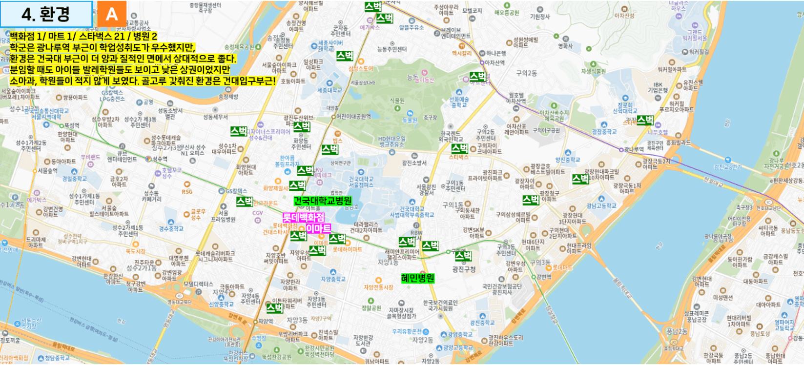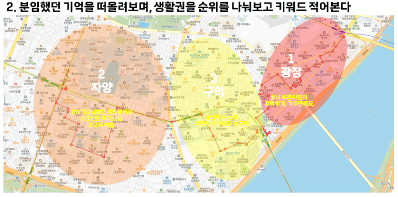 등등 함께 봤던 것들을 같이 이야기 나누면서 내가 느낀 생활권 순서와 특징들을 키워드로 정리해봅니다