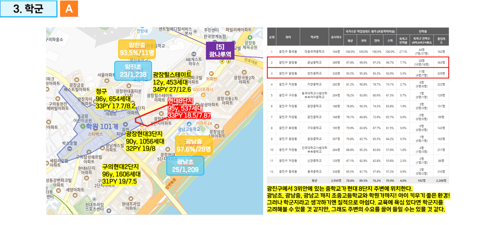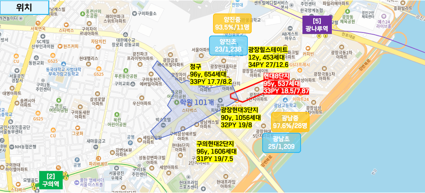 단지가 위치한 지역에 대한 가치판단을 해보았고!