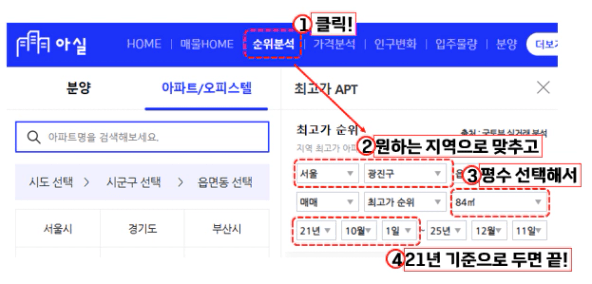 3. 지역 선택/기간선택 후 평형 중 84 선택