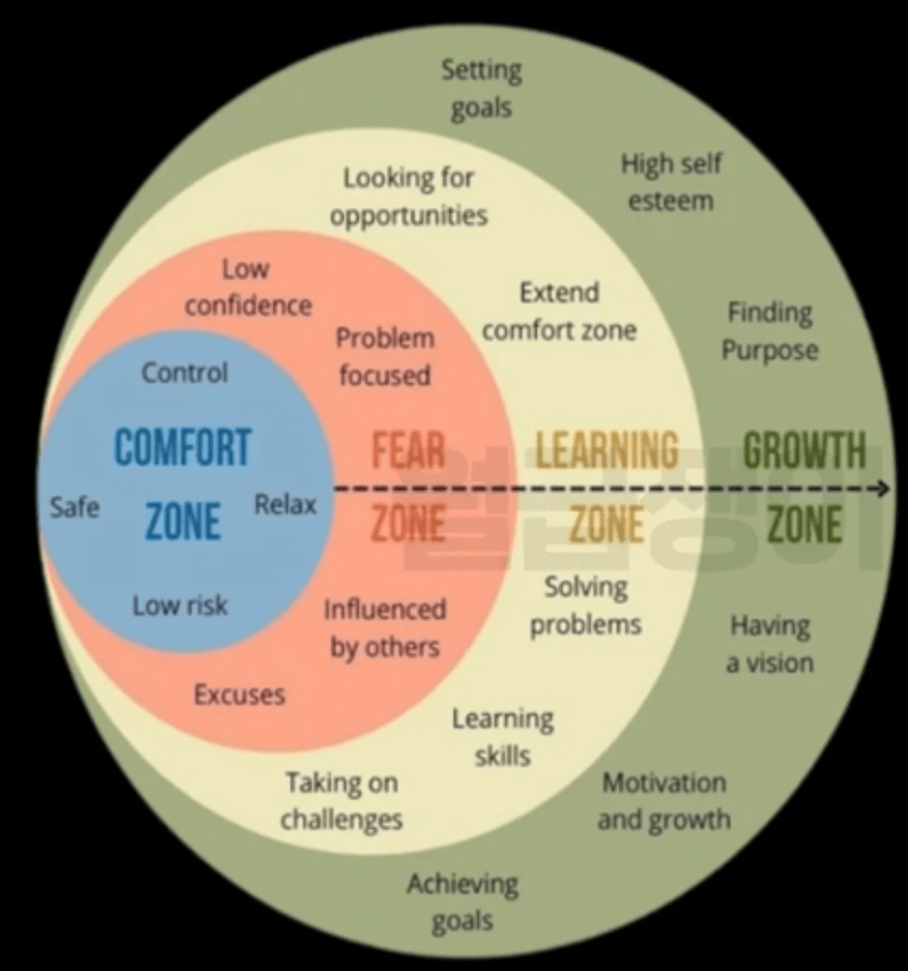이 알을 깨고 공포지대를 넘어서야하고, 배움을 통해 성장의 지대로 갈 수 있습니다.