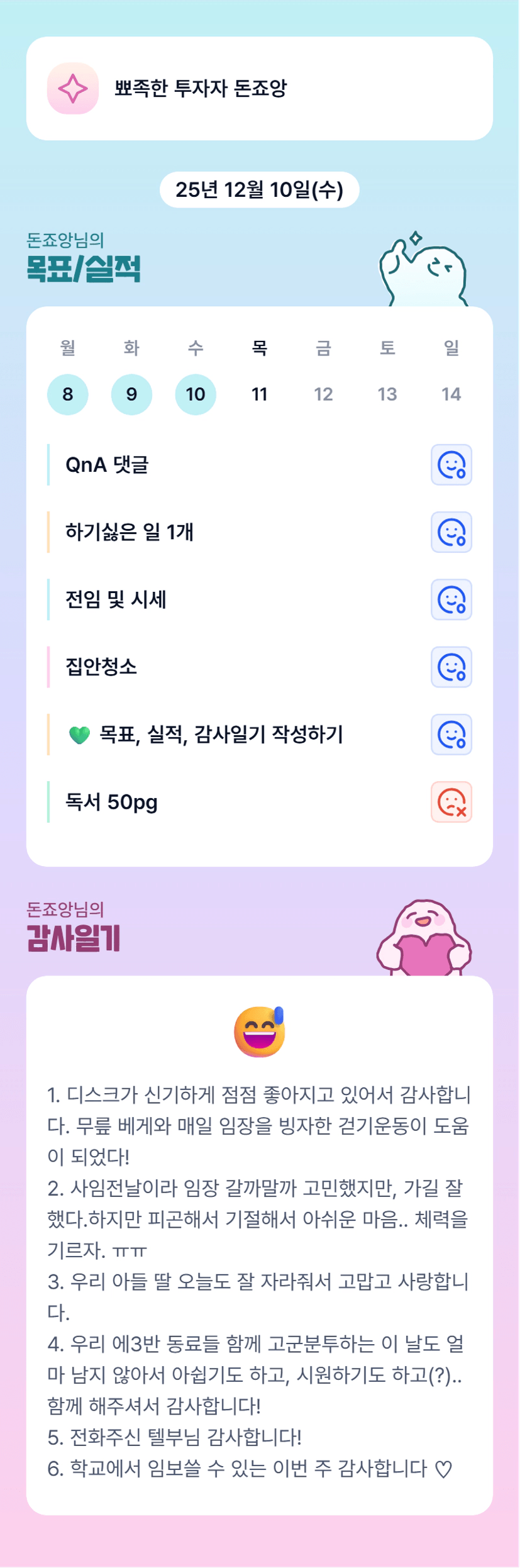 컨디션 좋아지셔서 다행이에요 죠앙님 조금만 더 힘내자요!!
