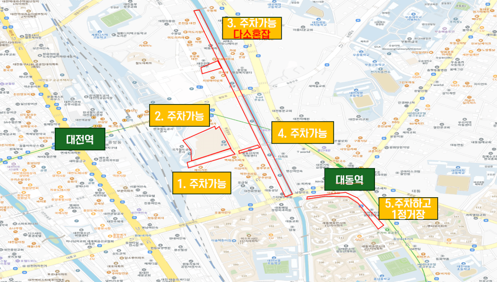 특히 1,2번 지역에 주차하면 대전역까지 5분만 걸어가면 됩니다 ㅎㅎㅎ