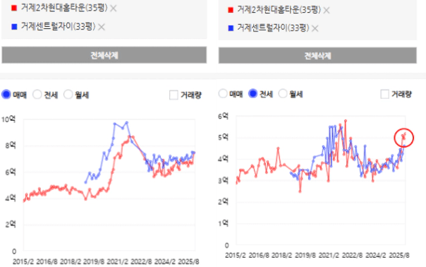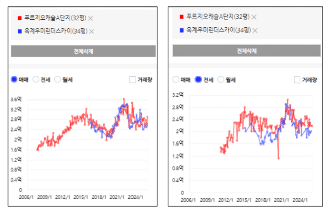 과거 상승장에서는 두 단지가 비슷한 흐름을 보였습니다.