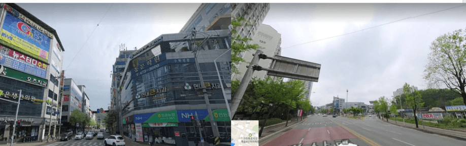 오른쪽 사진은 구미역이 위치한 원도심으로