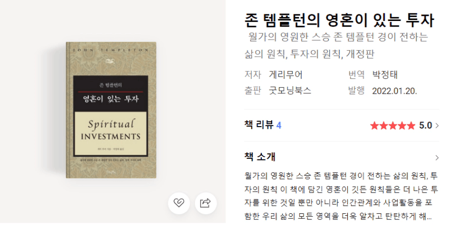 이 책에 담긴 영혼이 깃든 원칙들은 더 나은 투자를 위한 것일 뿐만 아니라 인간관계와 사업활동을 포함한 우리 삶의 모든 영역을 더욱 알차고 탄탄하게 해주는 것이다. 《존 템플턴의 영혼이 있는 투자》는 그런 점에서 단순히 수익률을 높여주는 투자서적이 아니라 보다 풍요로운 인생을 살아가도록 해주는 인생 지침서다. 한 세기를 살다간 월가의 영원한 스승 존 템플턴(1912~2008)이 투자자에게 전해주는 진정한 메시지는 한마디로 “주식 투자보다 훨씬 더 중요한 삶의 목표가 있다”는 것이다.