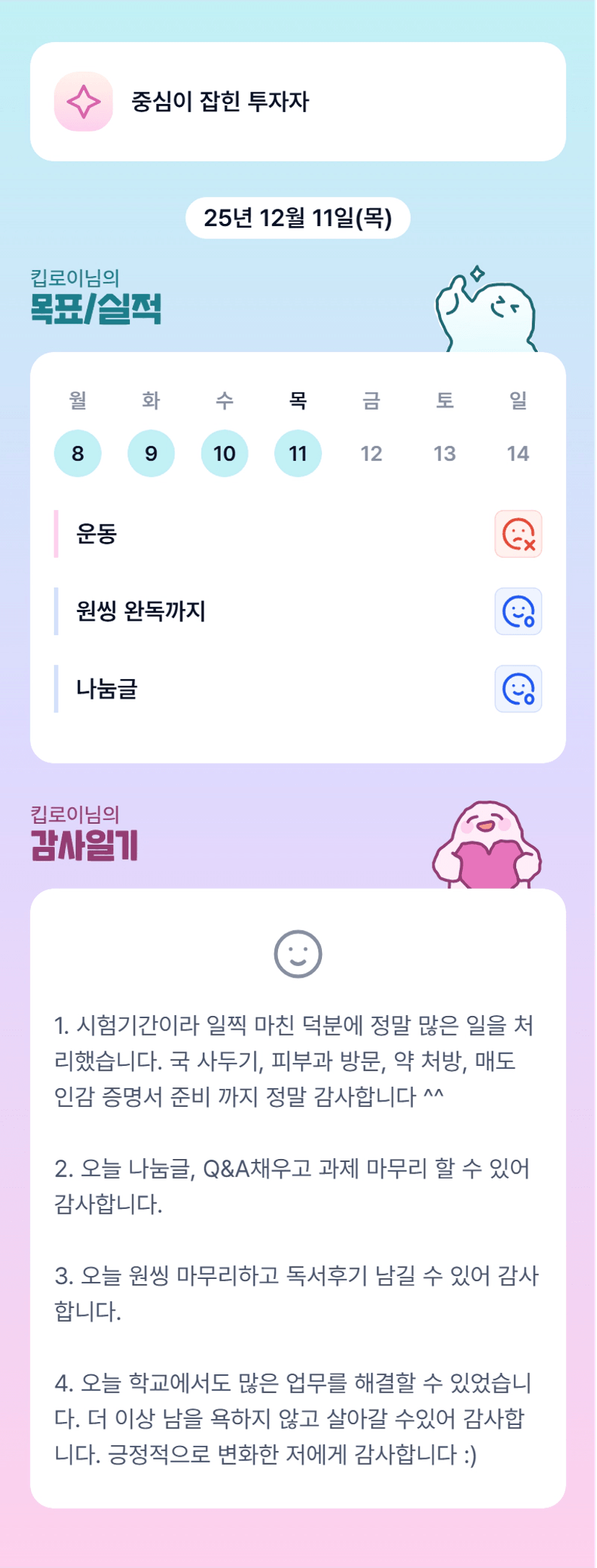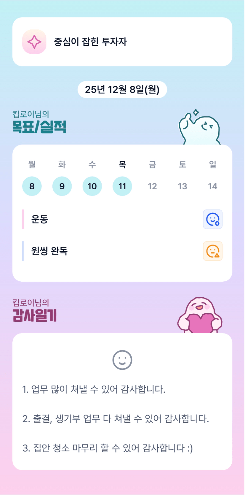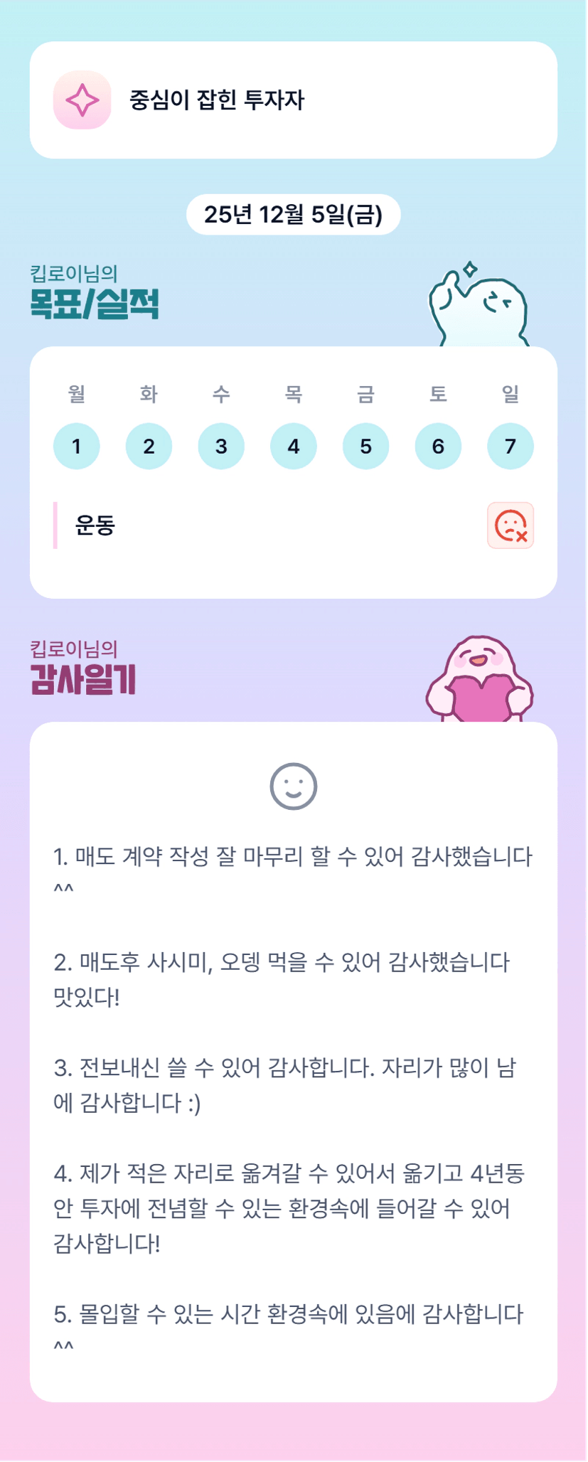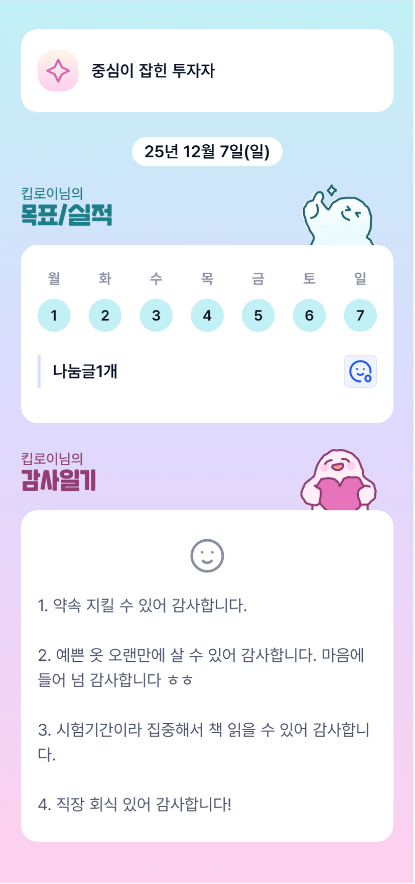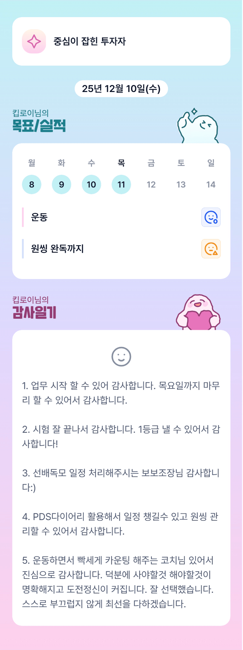 로이 화이팅! 멋지다! 목실감 어플도 넘 이쁘다!! ㅋㅋㅋㅋ