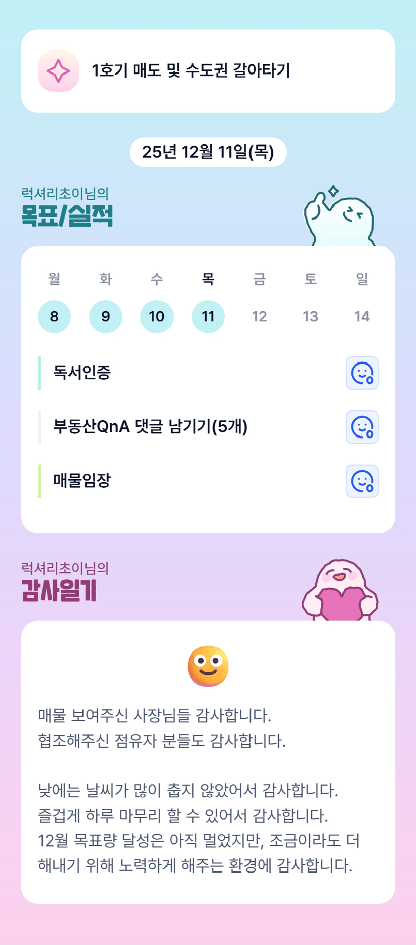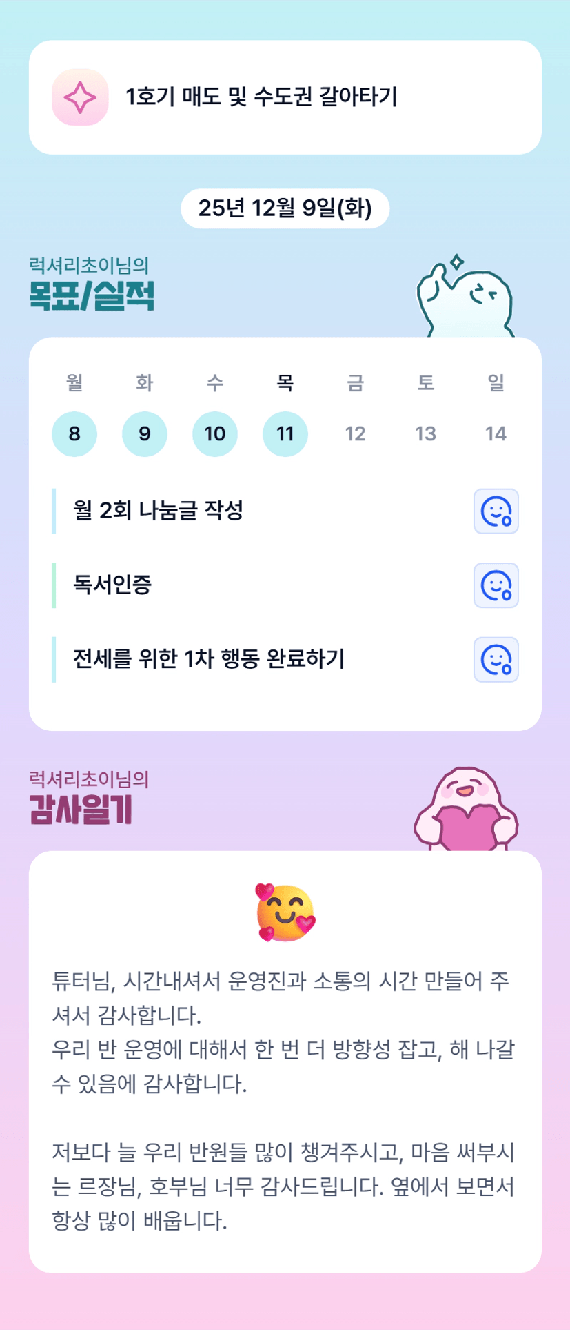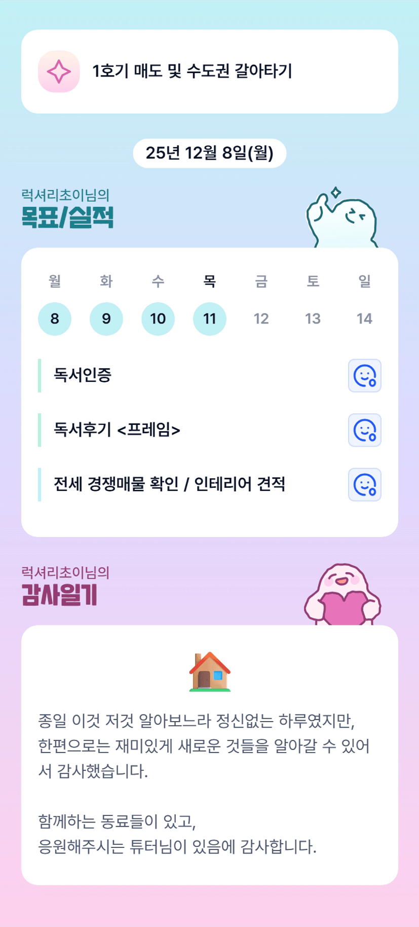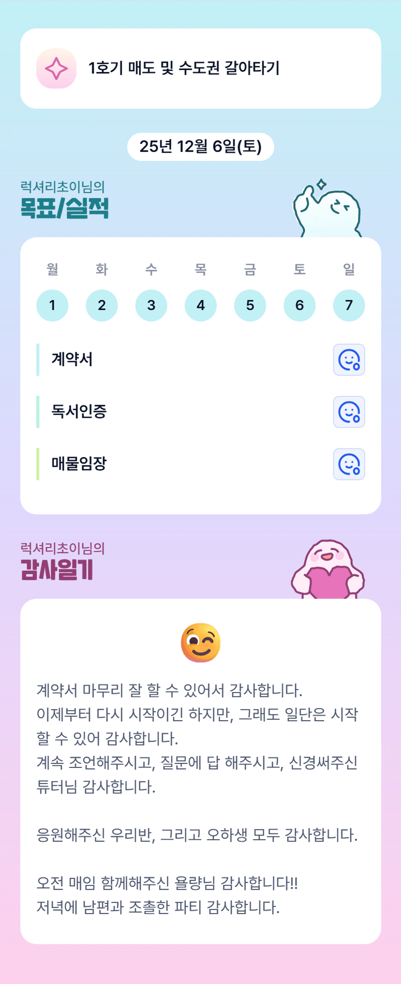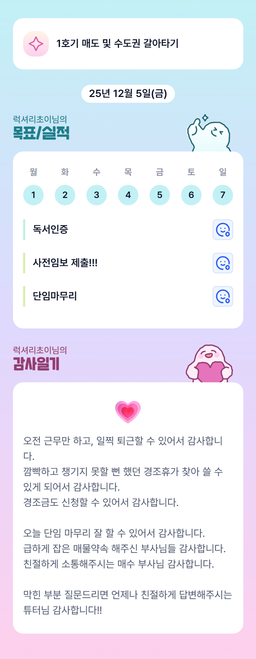 초이님 전세 마무리까지 화이팅입니다!! 이따 뵈어요 :)