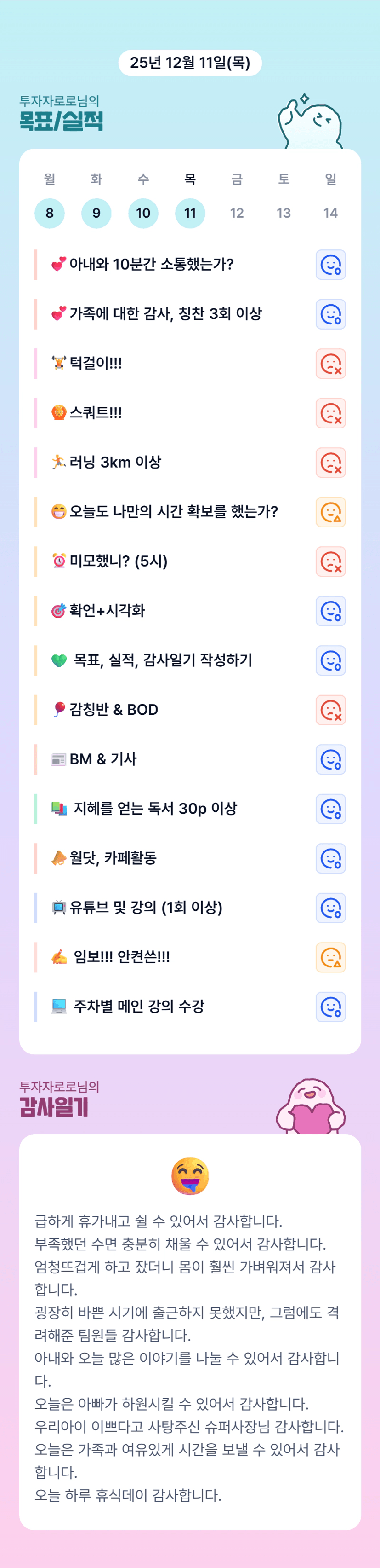 푹 쉬셨을까요 조장님 아침에 인사 없으시길래 걱정했습니다ㅠ