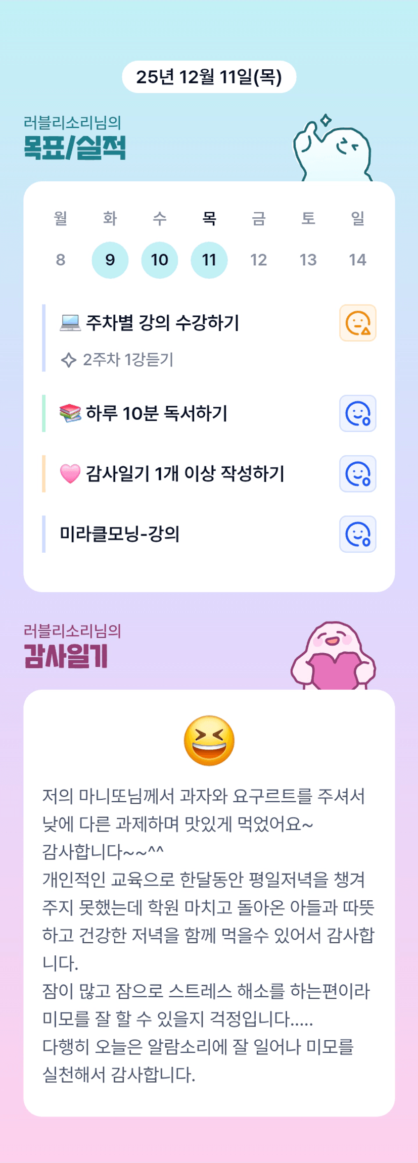 오~미모 성공 하셨군요^^ 저도 잠이 엄청 많고 잠 좋아하는데 월부하면서 잠이랑은 '사요나라'네요 ㅎㅎ 마니또 ㅎㅎㅎ 학교 때 생각나네요 ~~