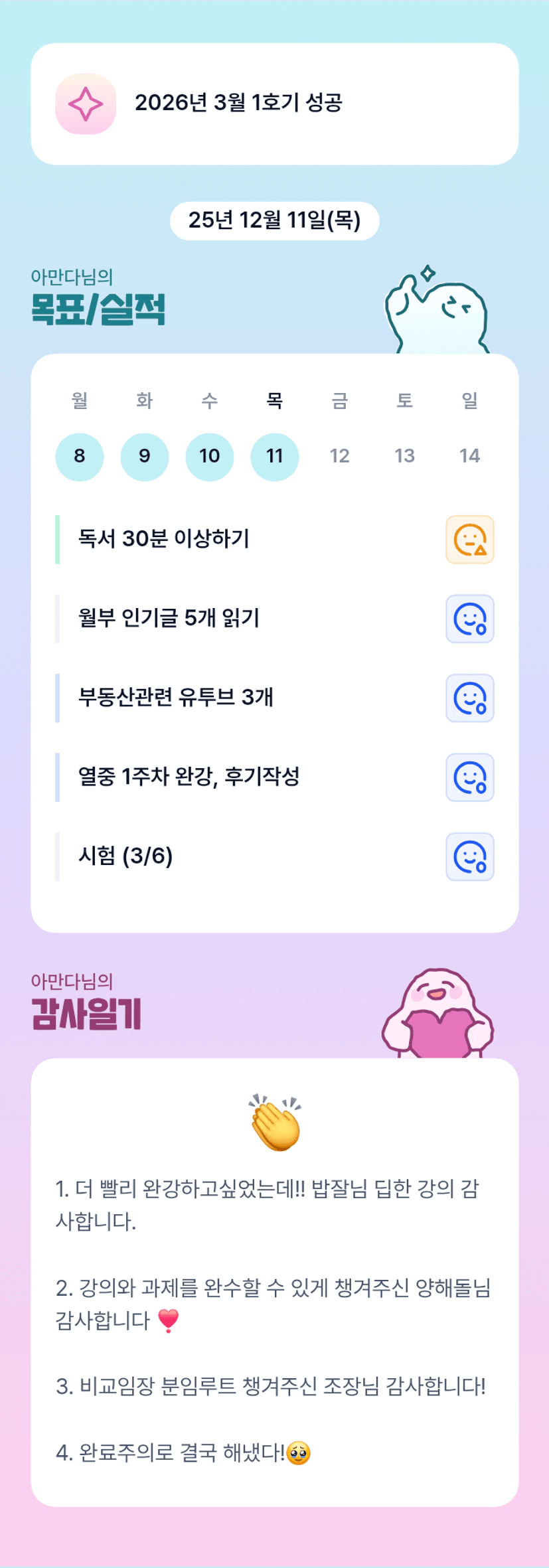 루틴챔피언!!! 과제 제출 수고하셨습니다. ^^