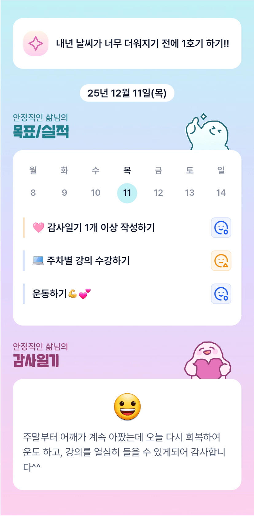 안정님~ 아픈 어깨 회복해서 다시 열공하고 운동도 할 수 있게 되어 다행이에요^^ 우리 오늘도 힘내보아요:)