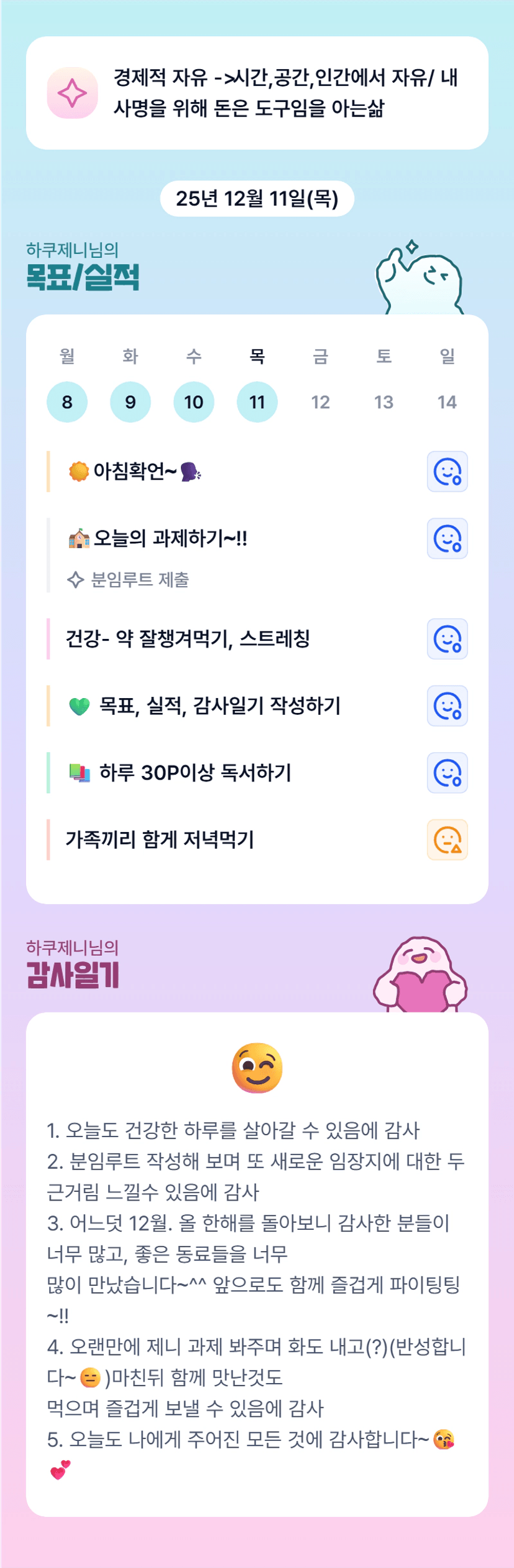 하쿠제니님!! 수고많으셨습니다! 오늘도 화이팅💪💜