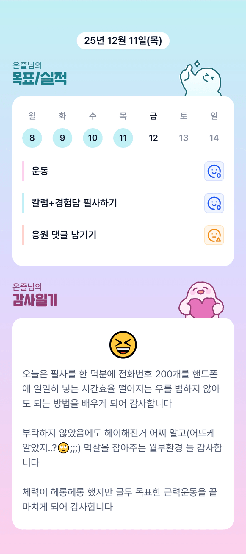 우아 운동도 하시궁!! 멋지심다아아 >< 어어어 꿀팁!! 온즐님의 필사를 보면 알 수 있겠지여?ㅎㅎㅎㅎㅎ 고고!! 가겠숨당! 고생많으셨어영 🧡🧡🧡