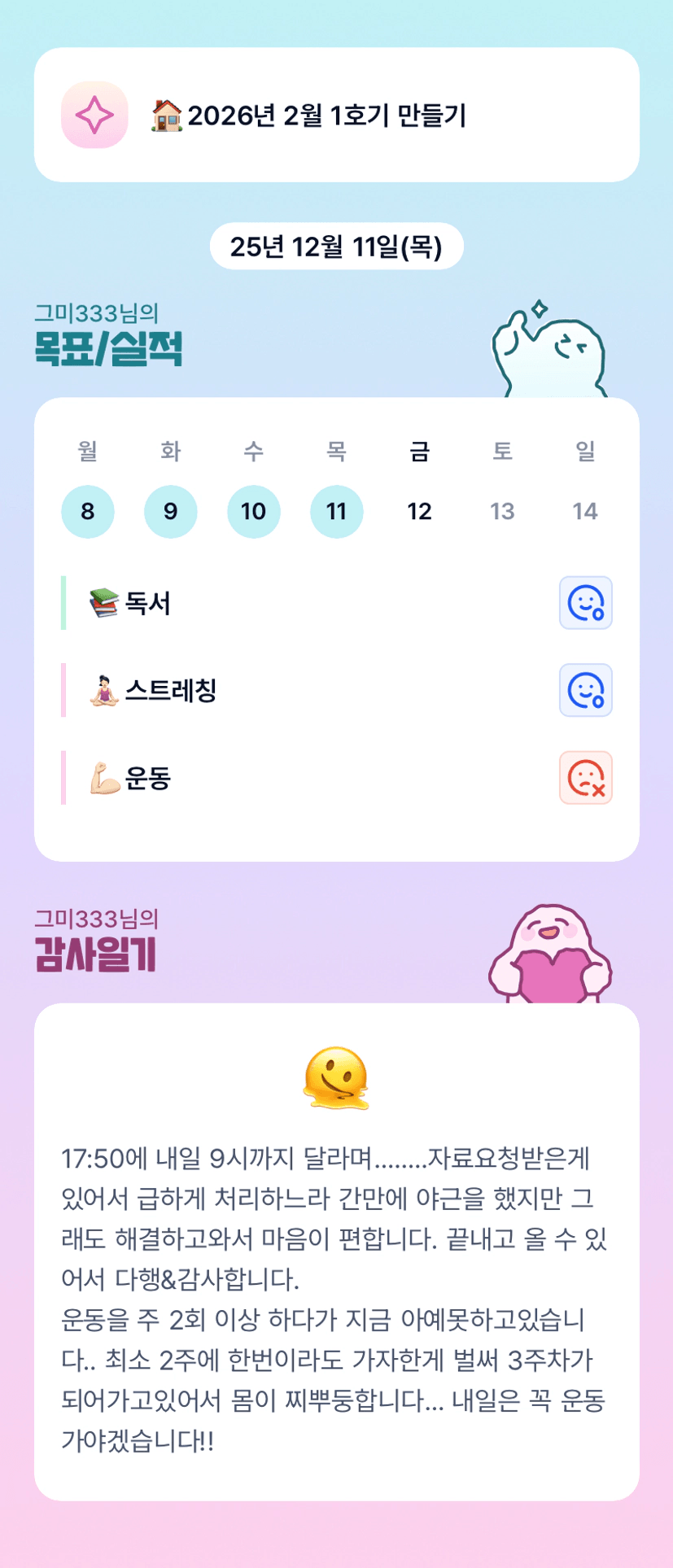 한달만에 운동했는데 근육이 다 빠졌더라고요 화이팅입니다!