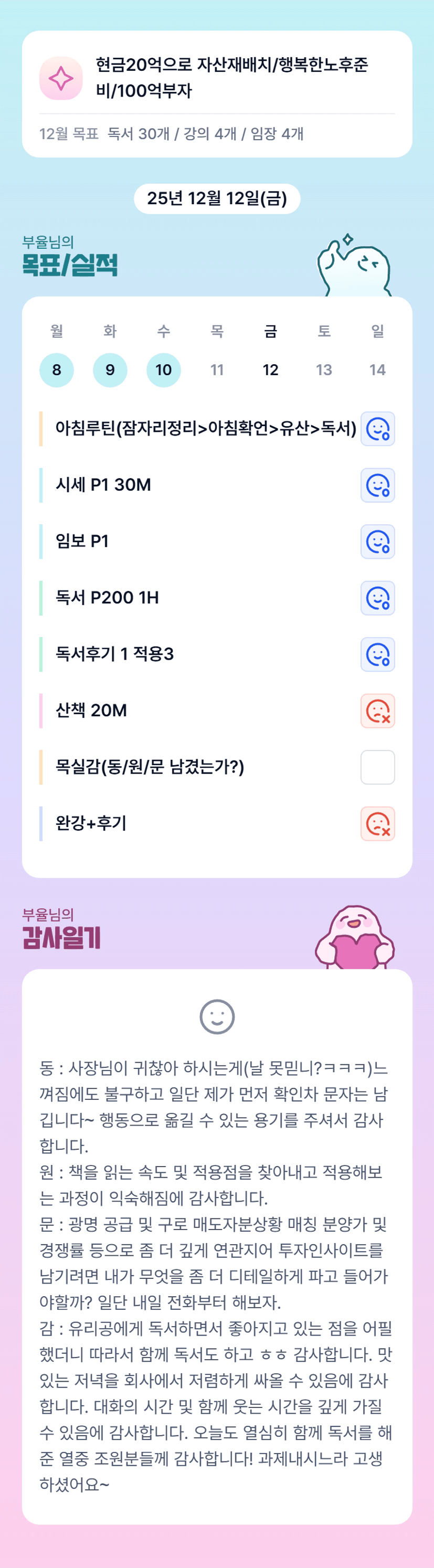 부율님 감사일기 정말 자세하게 쓰시네요!!! 유리공과 독서내용 공유하는 부분 너무 좋습니다