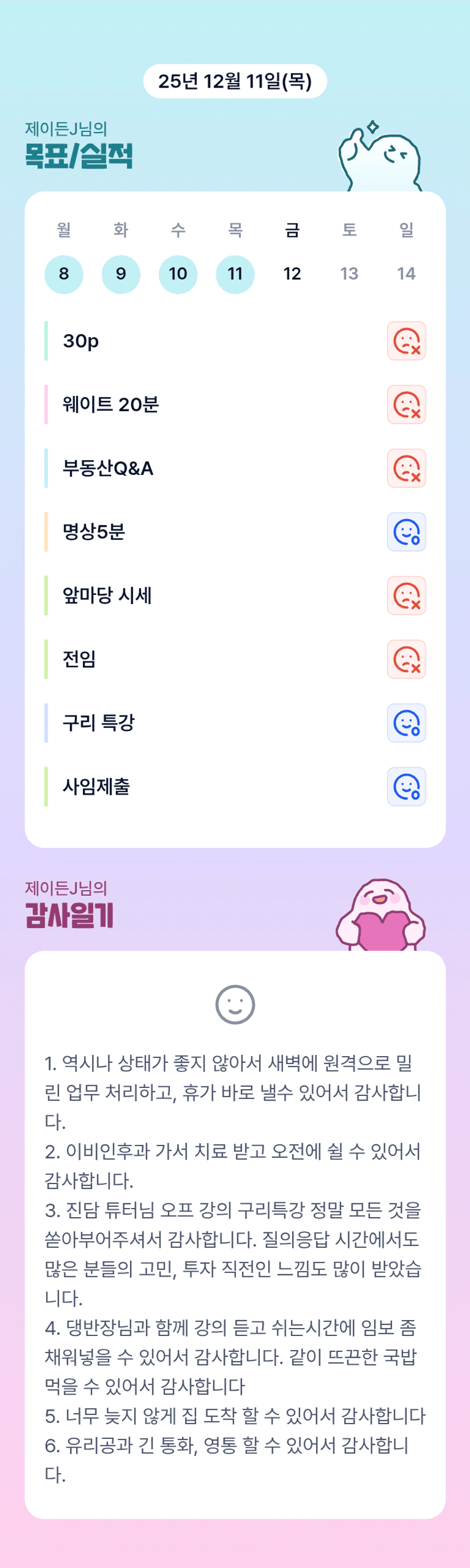 컨디션 안좋아서 9시 퇴근이라니~~~든부님 너무 수고하셨어요~~