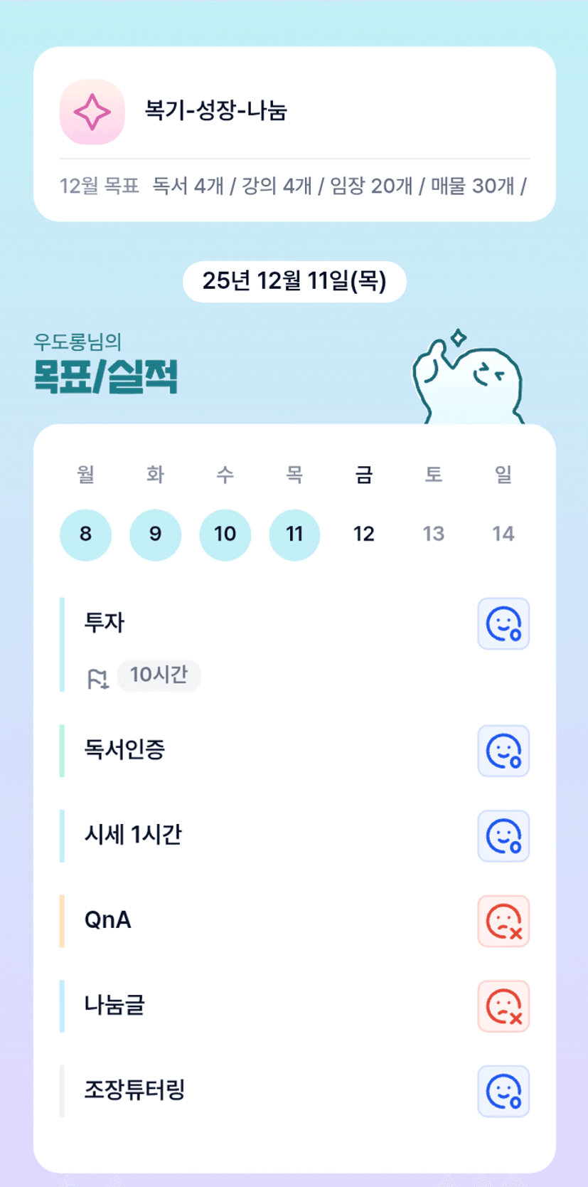 - 짝꿍 감사합니다. 퇴근 후 이틀 연속 학원 가며 발전하려 노력하는 모습 멋있습니다. 상대의 모든 면을 이해해주려 노력하는 짝꿍 존경하고 감사합니다💖
