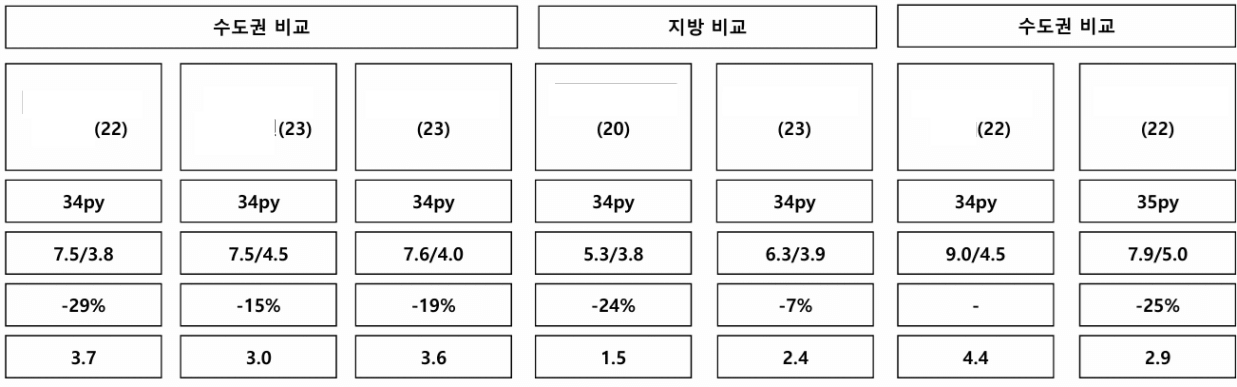 우선 비교 평가를 하면서 해당 지역내에서 랜드마크 단지와 저평가로 보여지는 단지를 추려서 비교평가를 해봅니다.