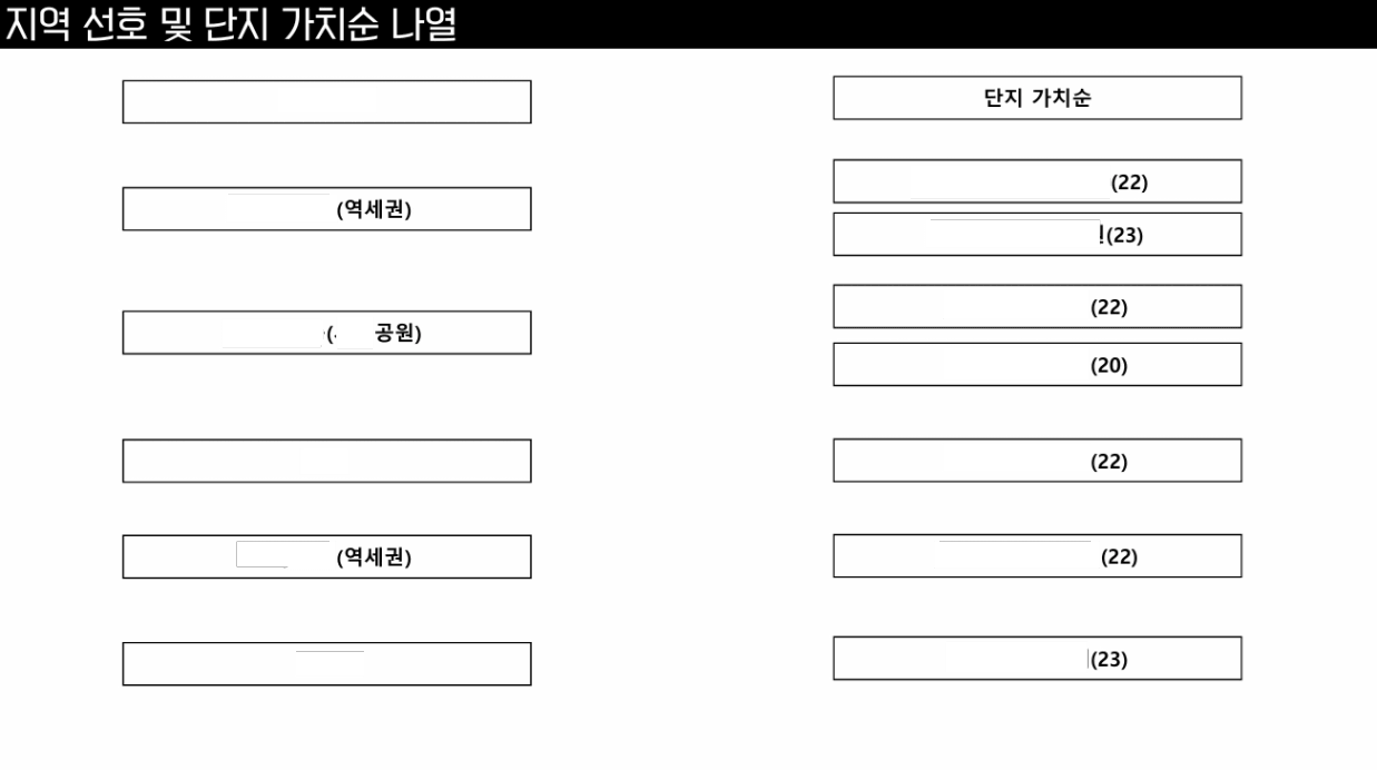 예를 들어 XX지역 선호와 단지 가치순을 분임전, 분임후, 단임후 나열된 것을 토대로 아래와 같이 나열해 봅니다.
