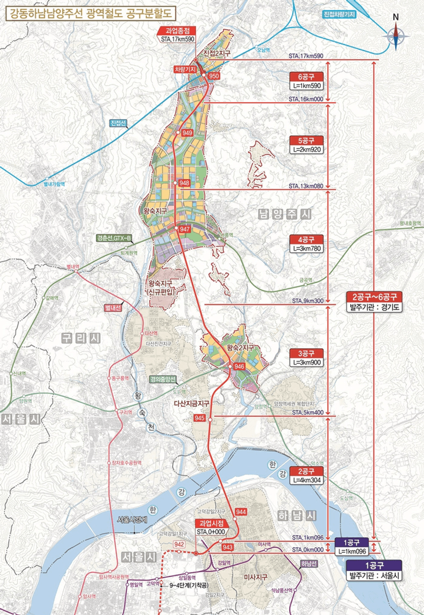 • 서울 강동구 → 하남미사지구→남양주왕숙,왕숙2지구 →진접2지구 까지 연결하는 광역철도 노선
