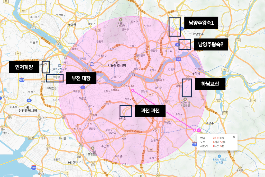 결론적으로 3기신도시 중에서는 강남과의 거리가 중간수준 이지만 거리는 가깝지 않습니다.