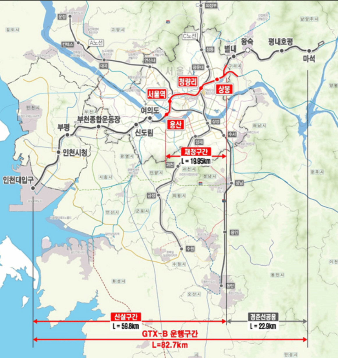 GTX-B노선은 수도권광역급행철도 중 하나로
