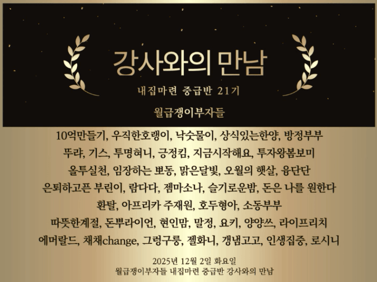 열심히 할 수 있었던 건,클로이님, 빈쓰님, 이번 내집마련 중급반 동료분들, 21기 2조