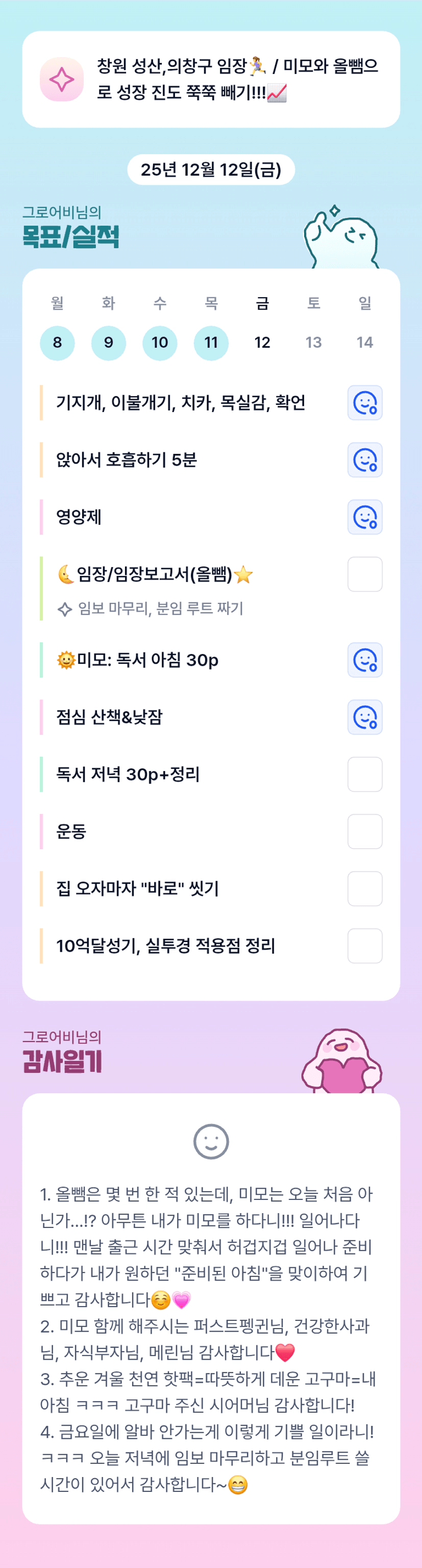 ㅎㅎ뿌듯한 아침!! 해내는 저녁!! 금요일 마무리도 즐겁게 보내세용ㅎㅎ