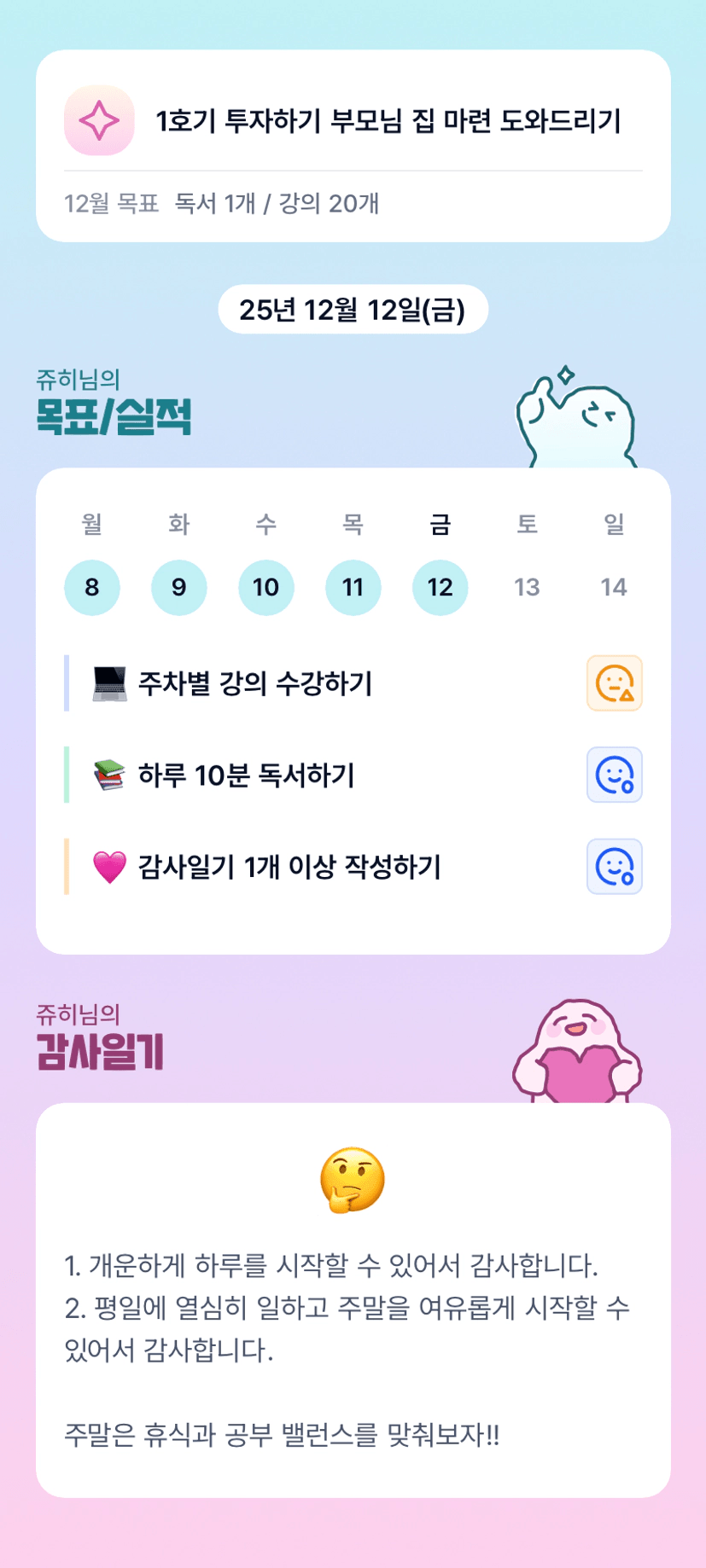 쥬히님 목실감 파이팅입니다!주말 밸런스 맞춰가봐요!