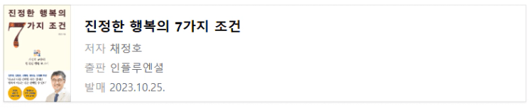 책 제목(책 제목 + 저자) :  진정한 행복의 7가지 조건 / 채정호
