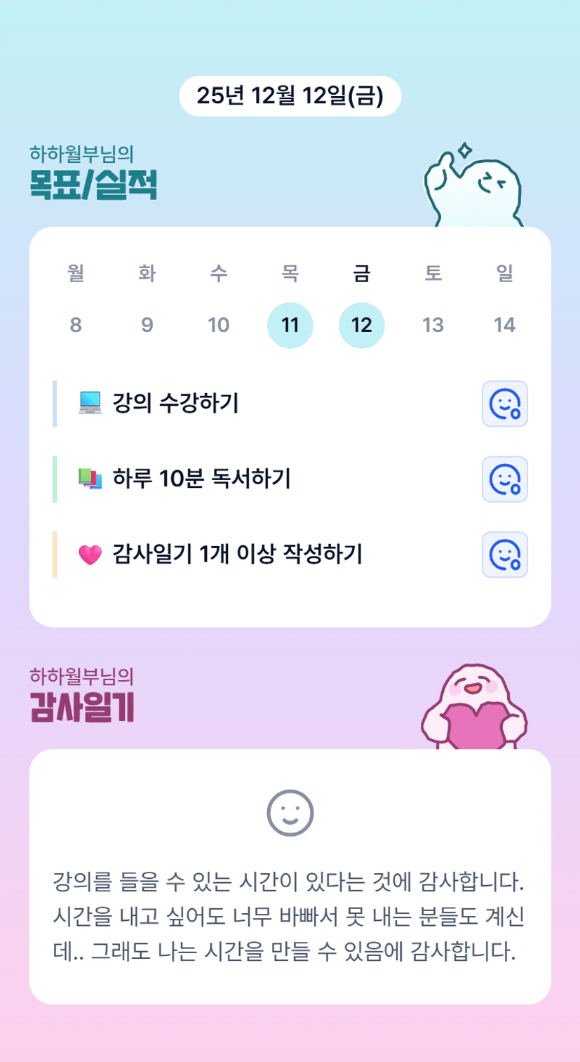 하하월부님 목실감 이어나가시느라 고생 많으셨어요! 하루 남은 목실감도 포기하지 마시고 팟팅!