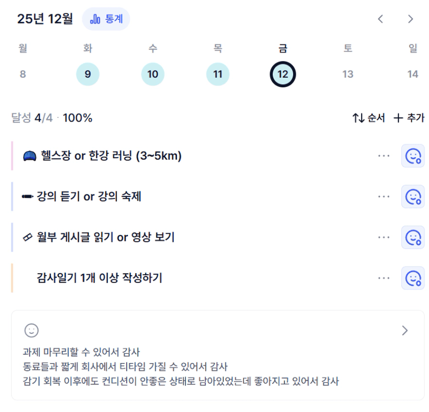 추운 날씨에 여러 일정이 있었지만 정말 이번 한주는 그냥 보내는 날이 없었던 것 같다. 반대로 회사 업무와 내년의 불확실한 미래, 월부 생활까지 함께 가지고 가는게 쉽지 않고 이런 부담을 줄일 수 있는 휴식이나 활동이 필요하다는 것을 느꼈다