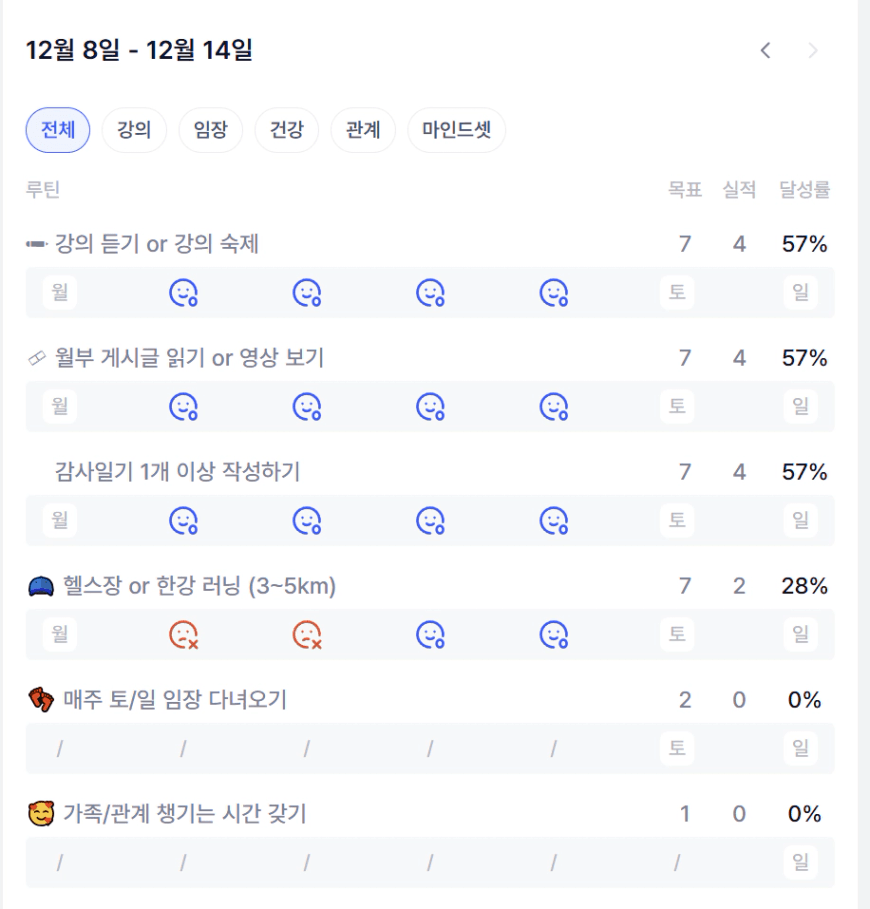 2️⃣ 이번 주 목실감을 작성하면서 느낀점과 더불어 한 주 스스로 어떻게 지냈는지 간단한 회고를 적어보아요 :)